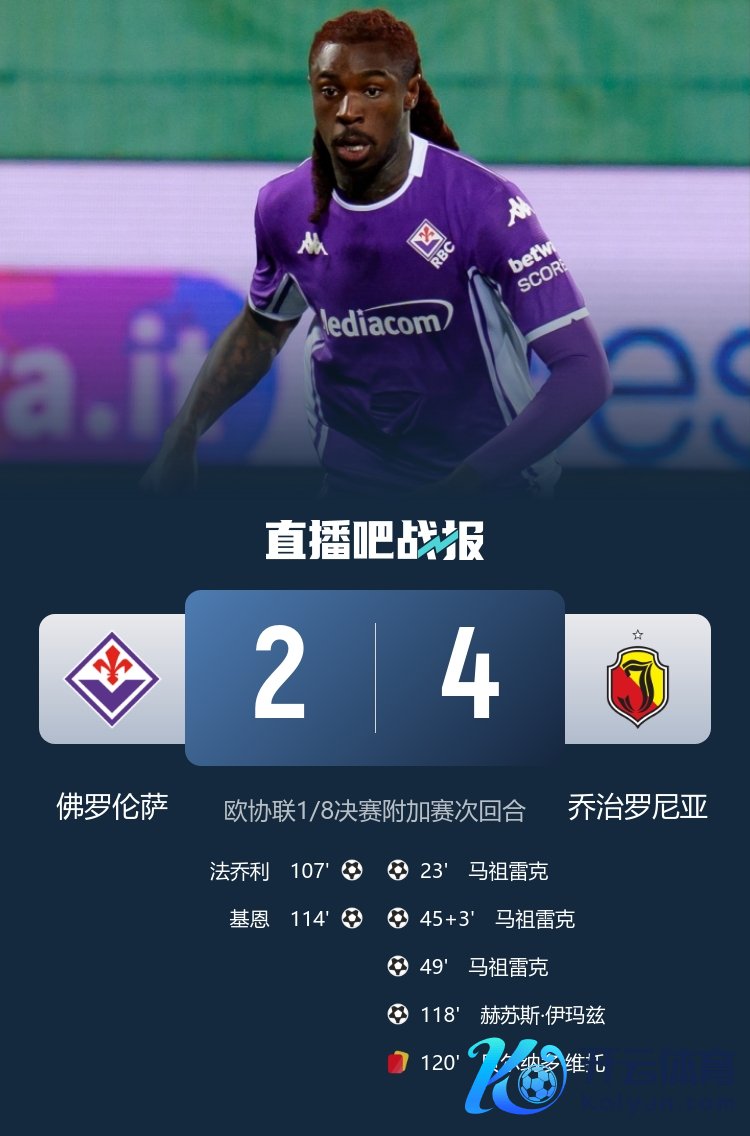 有惊无险!佛罗伦萨加时2-4总比分5-4乔治罗尼亚晋级欧协联16强