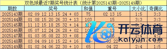 开奖回来:双色球第2025149期奖号为:01 02 04 06 22 30 + 10体育集锦,红球和值为65,奇偶比为1:5,大小比为2:4。蓝球开出偶数。