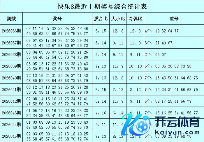 福彩安稳8第2026045期开出奖号:02 03 05 09 11 12 13 18 19 25 35 38 45 57 61 65 68 70 72 76,其中奖号质合比为7:13,四区比为9:3:2:6,包含6个重号03、09、13、19、68、76体育集锦,包含连码02 03、11 12 13、18 19,包含4个邻号02 12 18 61。