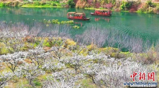 搭客坐花船看李花 。谭世聪 摄