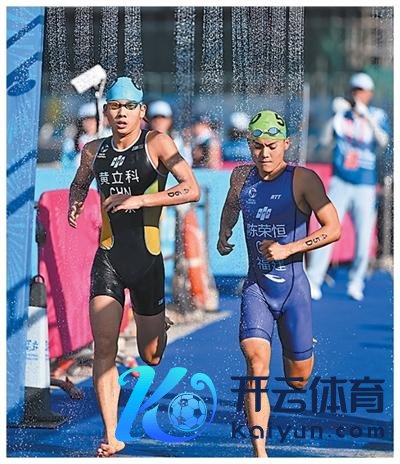 指示员在十五运会铁人三项羼杂死力赛中。人民日报记者 王亮摄