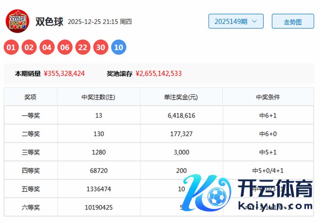 开奖回归:第2025149期双色球奖号为01、02、04、06、22、30+10。区间比:4:1:1,奇偶比:1:5体育录像/图片,首尾间距:29。