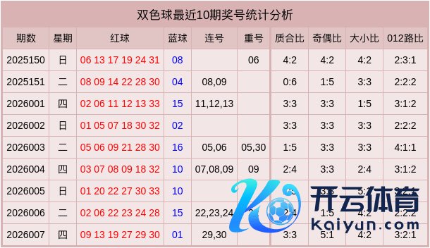 福彩双色球近10期奖号数据统计表
