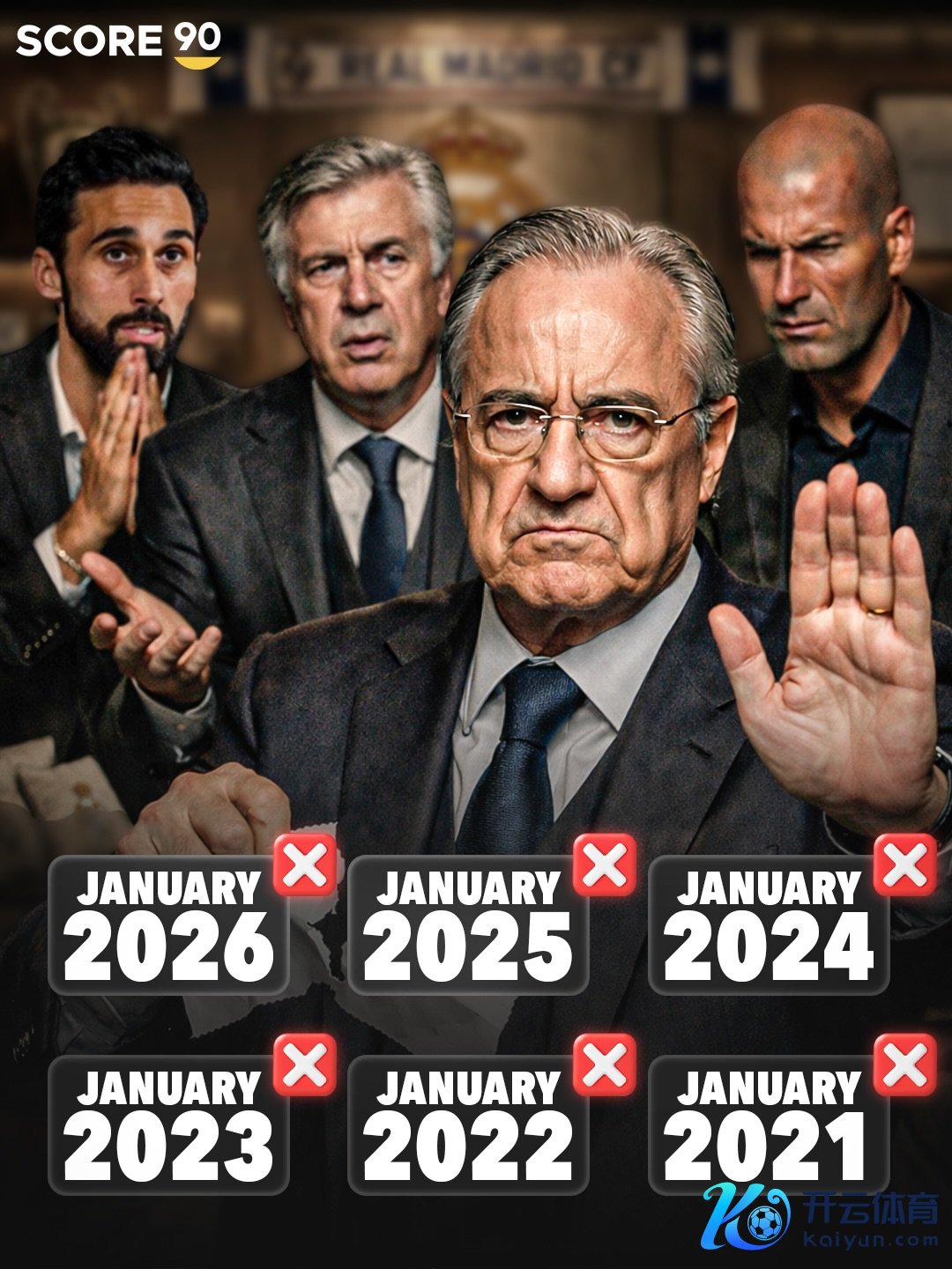弗洛伦蒂诺在2000-2006年及2009-2026年担任皇马主席。在这抓掌的23年间,他仅在冬窗签下雷尼尔、卜拉欣·迪亚斯、卢卡斯·席尔瓦、迭戈·洛佩斯、阿德巴约和格拉维森这6名球员。