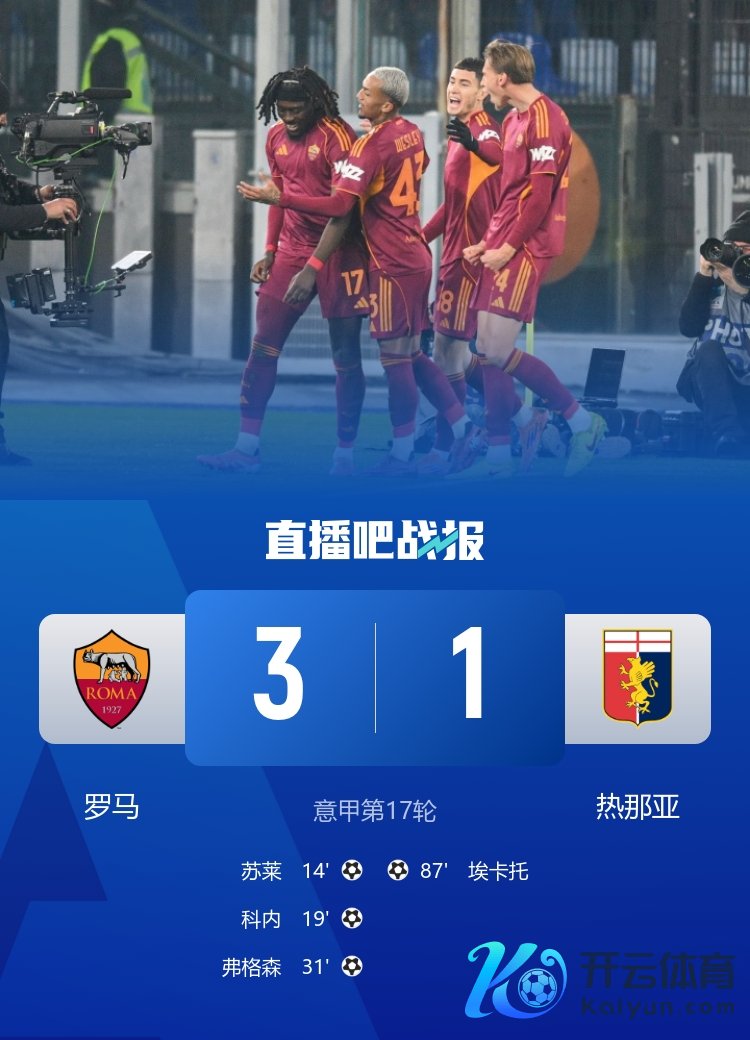 意甲第17轮,罗马3-1降服热那亚升至第四,苏莱进球。