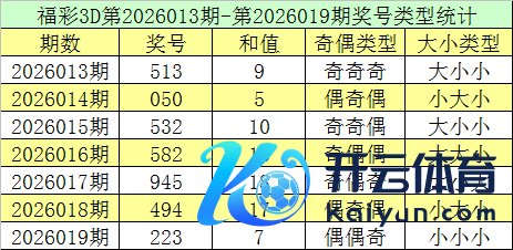 福彩3D第2026019期讲究:奖号为223,奖号奇偶比为1:2,大小比为0:3体育赛事直播,和值为7,类型为组三。